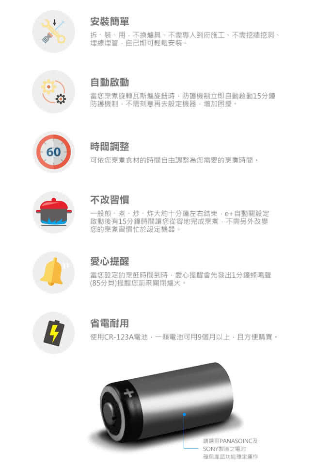 ↓↓↓【e+ 自動關】瓦斯爐輔助安全開關 定時自動熄火(橫式 兩入組)限量特惠的優惠按鈕↓↓↓
